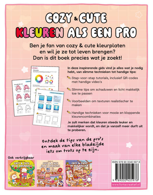 Ben je fan van cozy & cute kleurplaten en wil je ze tot leven brengen? Dan is dit boek precies wat je zoekt! Met dit cozy kleurboek van de populaire Belly Bean Co. leer je stap voor stap hoe je je cozy kleurboeken steeds mooier en interessanter kunt inkleuren. Je vindt pagina’s over kleurenleer, handige tutorials en een heleboel pagina’s met eenvoudig te volgen oefeningen. Zo leer je kleuren mengen, schaduwen kleuren, lichtinvallen suggereren, regeneffecten aanbrengen, en nog veel meer.