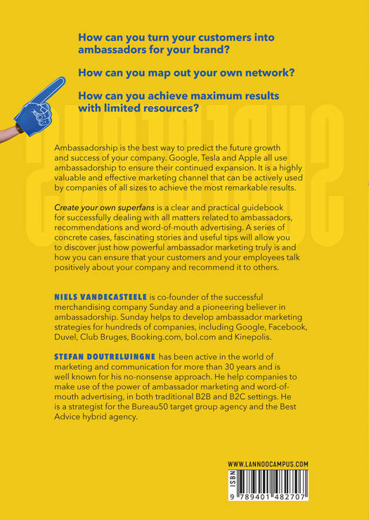 How can you turn your customers into ambassadors for your brand? How can you map out your own network? How can you achieve maximum results with limited resources? Brand ambassadorship is the best way to predict the future growth and success of your company. Google, Tesla and Apple all use ambassadorship to ensure their continued expansion. It is a highly valuable and effective marketing channel that can be actively used by companies of all sizes to achieve the most remarkable results. Create Your Own Superfans is a clear and practical guidebook for successfully dealing with all matters related to brand ambassadors, recommendations and word-of mouth advertising. A series of concrete cases, fascinating stories and useful tips will allow you to discover just how powerful brand ambassador marketing truly is and how you can ensure that your customers and your employees talk positively about your company and recommend it to others.