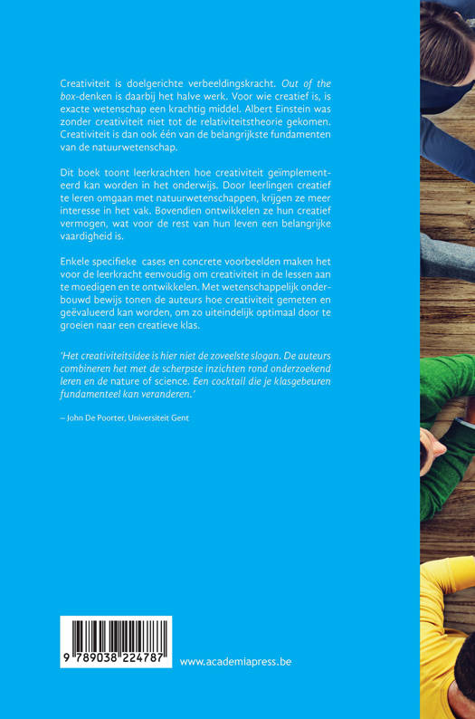 Creativiteit is doelgerichte verbeeldingskracht. Out of the box-denken is daarbij het halve werk. Voor wie creatief is, is exacte wetenschap een krachtig middel. Albert Einstein was zonder creativiteit niet tot de relativiteitstheorie gekomen. Creativiteit is dan ook één van de belangrijkste fundamenten van de natuurwetenschap. Dit boek toont leerkrachten hoe creativiteit geïmplementeerd kan worden in het onderwijs. Door leerlingen creatief te leren omgaan met natuurwetenschappen, krijgen ze meer interesse in het vak. Bovendien ontwikkelen ze hun creatief vermogen, wat voor de rest van hun leven een belangrijke vaardigheid is. Enkele specifieke cases en concrete voorbeelden maken het voor de leerkracht eenvoudig om creativiteit in de lessen aan te moedigen en te ontwikkelen. Met wetenschappelijk onderbouwd bewijs tonen de auteurs hoe creativiteit gemeten en geëvalueerd kan worden, om zo uiteindelijk optimaal door te groeien naar een creatieve klas.