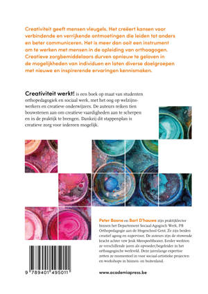 Creativiteit werkt! is een boek op maat van studenten orthopedagogiek en sociaal werk, met het oog op welzijnswerkers en creatieve onderwijzers. De auteurs reiken tien bouwstenen aan om creatieve vaardigheden aan te scherpen en in de praktijk te brengen. Dankzij dit stappenplan is creatieve zorg voor iedereen mogelijk.