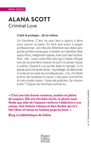 Un fantôme. C’est ce que Jess a appris à être pour sauver sa peau. En tant que tueur à gages professionnel, son rôle est d’éliminer ses cibles sans jamais se faire remarquer ni révéler son identité. Mais aujourd’hui, malgré les risques, il est sorti de l’ombre. Pour elle. Lexie, cette fille chez qui il s’était réfugié lors de sa première mission et qu’il n’a jamais réussi à oublier. Quand il a su qu’elle était en danger, il n’a pensé qu’à une seule chose : la protéger. Et désormais il va devoir en subir les conséquences… Car, s’il s’était promis de ne jamais la revoir, c’est pour une bonne et très simple raison : Lexie est policière. Sa mission à elle ? Traquer les hommes comme lui…