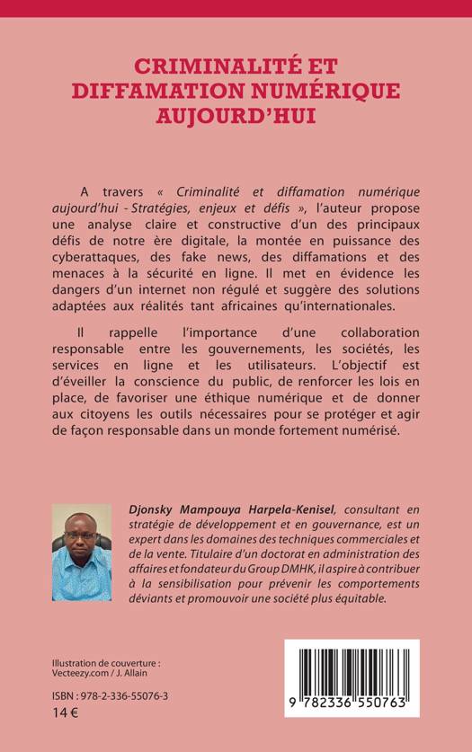 À travers Criminalité et diffamation numérique aujourd'hui. Stratégies, enjeux et Défis, l'auteur propose une analyse claire et constructive d'un des principaux défis de notre ère digitale, la montée en puissance des cyberattaques, des fake news, des diffamations et des menaces à la sécurité en ligne. Il met en évidence les dangers d'un internet non régulé et suggère des solutions adaptées aux réalités tant africaines qu'internationales. Il rappelle l'importance d'une collaboration responsable entre les gouvernements, les sociétés, les services en ligne et les utilisateurs. L'objectif est d'éveiller la conscience du public, de renforcer les lois en place, de favoriser une éthique numérique et de donner aux citoyens les outils nécessaires pour se protéger et agir de façon responsable dans un monde fortement numérisé.