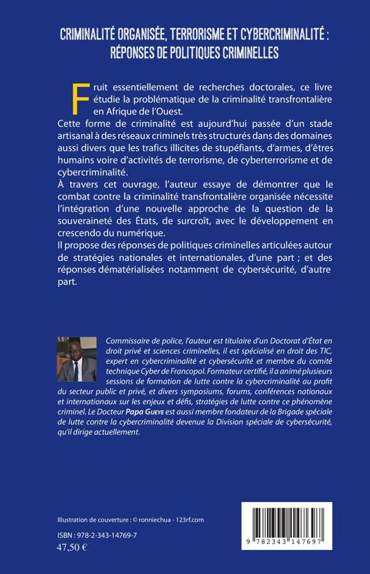 Ce livre étudie la problématique de la criminalité transfrontalière en Afrique de l'Ouest. L'auteur essaye de démontrer que le combat contre la criminalité transfrontalière organisée nécessite l'intégration d'une nouvelle approche de la question de la souveraineté des États, de surcroît, avec le développement du numérique. Il propose des réponses de politiques criminelles articulées autour de stratégies nationales et internationales, d'une part ; et des réponses dématérialisées notamment de cybersécurité, d'autre part.