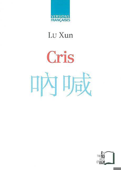 Cris rassemble les nouvelles de la période du 4 mai 1919 où s'épanouit le mouvement pour la Nouvelle culture, qui revendique l'usage de la langue vernaculaire et s'en prend au moralisme confucéen. Certaines d'entre elles, comme " Le Journal d'un fou " ou " L'édifiante histoire d'A-Q ", sont devenues canoniques. D'autres, comme " Terre natale " ou " L'opéra de village ", représentent sur un mode élégiaque la Chine rurale du bas-Yangtse dans laquelle a grandi Lu Xun. Ce recueil, qui balance entre la dénonciation iconoclaste et la nostalgie d'un monde perdu, se compose donc de "cris" ambigus, dont l'auteur ne se soucie guère de savoir s'ils sont "hardis ou tristes, s'ils inspirent la haine ou le ridicule", et dont la seule gloire sera d'éveiller une petite minorité de lecteurs à "la souffrance d'une mort imminente et irrémédiable".