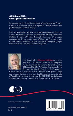 Le personnage de Cris d'Amour, foudroyé par la perte de l'aimée, trouvera la résilience dans la symphonie d'écrits d'amour des poètes qui composent ce florilège. De Lola Mouloudji à Maria Casarès, de Michelangelo à Hugo, de Lorca à Maïakovski, de Marot à Shakespeare, d'Emily Dickinson à Molière, de Racine à Obaldia, Rimbaud, Pouchkine... De la fougue amoureuse de Roméo au mal amour d'Alceste, de l'amour courtois, coquin, ravageur, fatidique, narquois, désespéré, triomphant, jusqu'à l'amour-humour... Telle est l'aventure proposée...