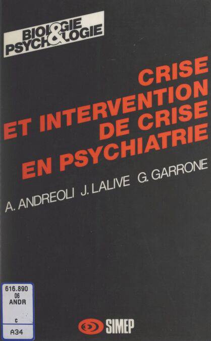 A. ANDREOLI Médecin chef, Service de Psychiatrie I. Genève. Chargé de cours au Département de Psychiatrie de l’Université de Genève. J. LALIVE Médecin chef, Service de Psychiatrie I, Genève. G. GARRONE Directeur du Département de Psychiatrie de l’Université de Genève, Médecin chef du Service de Psychiatrie I, Genève.