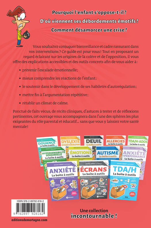 Pourquoi l’enfant s’oppose-t-il ? D’où viennent ses débordements émotifs ? Comment désamorcer une crise ? Vous souhaitez conjuguer bienveillance et cadre rassurant dans vos interventions ? Ce guide est pour vous ! Tout en proposant un regard éclairant sur les origines de la colère et de l’opposition, il vous offre des explications accessibles et des outils concrets afin de vous aider à : prévenir l’escalade émotionnelle ; mieux comprendre les réactions de l’enfant ; le soutenir dans le développement de ses facultés d’autorégulation ; mettre fin à l’argumentation répétitive ; rétablir un climat calme. Ponctué de faits vécus, de récits cliniques, d’astuces à tester et de réflexions pertinentes, cet ouvrage vous accompagnera dans l’une des sphères les plus exigeantes du rôle parental et éducatif… sans y laisser votre santé mentale !