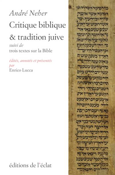 « L'exégèse de la parole biblique ne saurait être confiée à l'intelligence seule, non plus qu'à la foi seule », écrit ici André Neher. Et c'est donc vers une harmonie de la foi et de l'intelligence que s'oriente sa lecture du texte biblique, comme dans cet important inédit, retrouvé aux Archives de la Bibliothèque Nationale d'Israël à Jérusalem et que présente Enrico Lucca, chercheur au Centre Simon Dubnow de Leipzig. En retraçant l'histoire de la critique biblique, depuis les travaux inauguraux de Richard Simon ou de Julius Wellhausen, Neher revient sur une discussion fondamentale entre la recherche archéologique et textuelle et le point de vue théologique ou spirituel, avant d'en venir aux questions que posera la traduction de la Bible, et en particulier celle conçue par Franz Rosenzweig et Martin Buber. Ce que révèle de la Bible son passage dans une autre langue que l'hébreu est bien, pour Neher, l'essentialité de la langue originale elle-même, qui habite le texte comme aucune autre langue. Et c'est ce retour à l'hébreu, à la primauté de l'hébreu qui cristallisera le débat entre critique biblique et tradition juive et en confirmera l'harmonie paradoxale. André Neher (1914-1988) a marqué profondément les études juives en France, depuis Amos. Contribution à l'étude du prophétisme (1950), jusqu'aux recherches sur le Maharal de Prague et à l'enseignement qu'il a menés de Strasbourg à Jérusalem, aux côtés de Renée Neher-Bernheim (1922-2005).