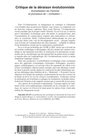 Pour l'évolutionnisme, le changement est continuel et l'humanité s'est installée dans un processus linéaire, sans césures, la conduisant vers un bien-être toujours supérieur. Cet ouvrage relève les jugements de valeur et les erreurs scientifiques, objectivement constatés, que cette idéologie a installés dans la pensée sociale. Aux apories de la déraison évolutionniste, l'ouvrage oppose les rudiments d'une socio-anthropologie, échafaudée sur les concepts de symbolique, de rupture et d'historicité pour poser les jalons d'une vision plus réaliste du changement social.