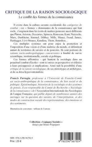 Il existe dans la culture savante occidentale des catégories de combat ; ces « formes » dominantes de la connaissance qui font socle, s'originent dans les écrits de maîtres penseurs aussi différents que Platon, Aristote, Descartes, Spinoza, Rousseau, Kant, Nietzsche, Marx, Bourdieu Ces multiples systèmes ont pour enjeu la promotion et l'imposition d'une vision et d'une maîtrise du monde. Ces formes, qui hantent la sociologie dans un perpétuel combat d'école, sont ici mises en perspective.