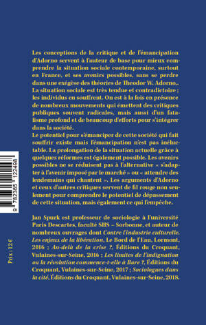 Les conceptions de la critique et de l'émancipation d'Adorno servent à l'auteur de base pour mieux comprendre la situation sociale contemporaine, surtout en France, et ses avenirs possibles, sans se perdre dans une exégèse des théories de Theodor W. Adorno,. La situation sociale est très tendue et contradictoire