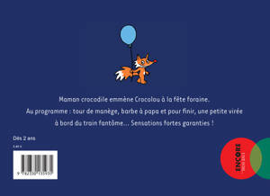 Aujourd'hui, maman emmène Crocolou à la fête foraine. Ce dernier est émerveillé par toutes les attractions : jeux d'adresse pour gagner des peluches, stands de friandises où l'on déguste une barbe à papa... Mais surtout, Crocolou est impatient de faire des tours de manèges!