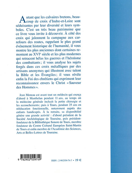 Autant que les calvaires bretons, beaucoup de croix d'Indre-et-Loire sont séduisantes par leur diversité et leurs symboles. C'est un très beau patrimoine que ce livre vous invite à découvrir. À côté des croix qui jalonnent la campagne aux carrefours des routes, rappelant le plus grand événement historique de l'humanité, il vous montre les plus anciennes dont certaines remontent au XVIe siècle et les plus modernes qui retracent hélas les guerres et l'héroïsme des combattants ; il vous analyse les sujets forgés dans ces croix métalliques par des artisans anonymes qui illustrent avec talent la Bible et les Évangiles ; il vous révèle enfin la Foi des chrétiens qui expriment leur reconnaissance envers le Christ «Sauveur des Hommes».