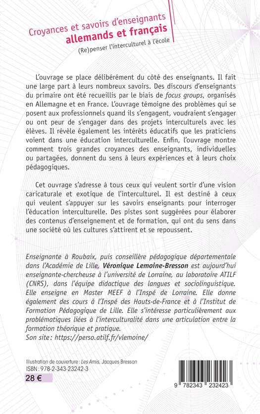 L’ouvrage se place délibérément du côté des enseignants. Des discours d’enseignants du primaire ont été recueillis par le biais de focus groups, organisés en Allemagne et en France. L’ouvrage témoigne des problèmes qui se posent aux professionnels quand ils s’engagent dans des projets interculturels avec les élèves. Il révèle également les intérêts éducatifs que les praticiens voient dans une éducation interculturelle. Enfin, l’ouvrage montre comment trois grandes croyances des enseignants, individuelles ou partagées, donnent du sens à leurs expériences et à leurs choix pédagogiques. Cet ouvrage s’adresse à tous ceux qui veulent sortir d’une vision caricaturale et exotique de l’interculturel.