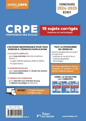15 sujets corrigés pour s'entraîner à l'option "Sciences et technologie" du CRPE