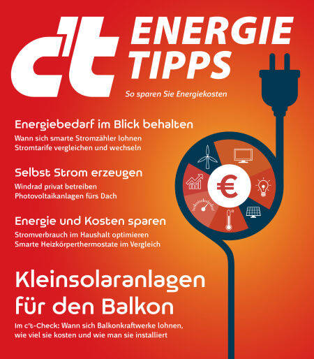 Die Entwicklungen an den Energiemärkten sind dramatisch. Das neue Sonderheft "c't Energie-Tipps" zeigt Ihnen Möglichkeiten, Energie zu sparen. Schon kleine Verhaltensänderungen können viel bewirken. Smarte Thermostate helfen beim Heizen. Messgeräte können Stromfresser identifizieren. Zusätzlich zum Sparen, können Sie Strom mit Solaranlagen selbst produzieren. Mit Mini-Solaranlagen für den Balkon oder große Dach-Solaranlagen. Diese und weitere spannende Themen finden Sie in dem Sonderheft "c't Energie-Tipps".