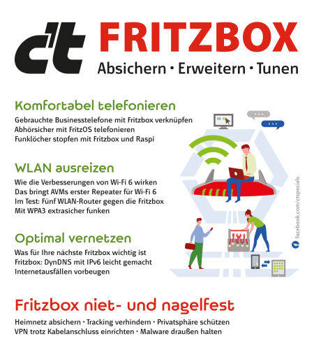 Als Technik-interessierter Anwender kann man leicht der Faszination des Neuen erliegen und davon bieten die aktuelle Generation der Fritzbox-Router und ihr wieder einmal geglückt erweitertes FritzOS-Betriebssystem reichlich. Doch letztlich soll ein Router alle Ihre Netzwerkgeräte reibungslos ans Internet ankoppeln, vor allem im Licht der zunehmenden Homeoffice-Tätigkeit. Im neuen Sonderheft c't Fritzbox erfahren Sie in praxisnahen Beiträgen wie Sie die Fritzbox unfallfrei absichern oder private Surfgewohnheiten vor fremden Augen schützen.