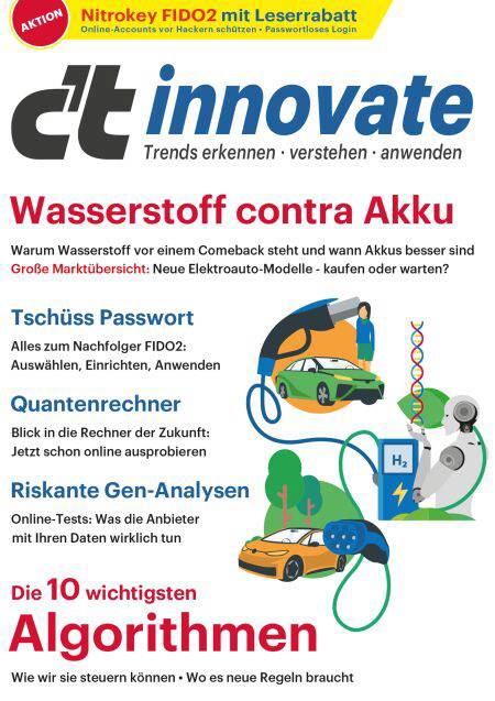 Für c't innovate haben sich das Computermagazin c't und das Wissenschaftsmagazin Technology Review zusammengetan. Die erste Co-Produktion richtet sich an alle, für die Innovation mehr ist als das neuste Smartphone-Modell. An Technik-Interessierte, die über den Tellerrand der IT hinausblicken wollen, und die technischen Trends von morgen nicht nur rechtzeitig erkennen, sondern auch verstehen und nutzen wollen.