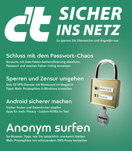 Im Sonderheft "c't Sicher ins Netz" erfahren Sie, wie Sie Ihren Computer vor Überwachern und Angreifern aus dem Internet schützen. Sie lernen Vor- und Nachteile der Angebote von VPN-Dienstleistern kennen. Wir helfen Ihnen bei der Auswahl der besten Methoden für jeden Zweck. Wie Sie sich in Ihre Online-Accounts optimal einloggen können, zeigen wir Ihnen anhand eines Leitfadens. Dass Sie Ihre Privatsphäre im Android-Smartphone mit einfachen Maßnahmen schützen können, erklärt die c't-Redaktion im Kapitel "Android aber sicher". Wollen Sie Ihr Android-Smartphone lieber ganz ohne Google betreiben, finden Sie zudem einen Vergleich von Custom-ROMs. Auch zu WhatsApp & Co. gibt es Alternativen: Mit Matrix können Sie Ihren eigenen Chatserver betreiben.