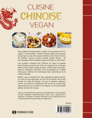 Des recettes chinoises faciles, variées, savoureuses et 100 % vegan ? C’est possible ! Cuisine chinoise vegan vous propose de plonger au cœur des saveurs infinies de la Chine à travers 86 recettes vegan : sauces, raviolis, nouilles, sautés, fritures… de quoi partager d’innombrables repas en famille ou entre amis ! Les recettes s'inspirent de l'enfance de Yang Liu passée dans diverses provinces de Chine et s’appuient sur la longue histoire de la cuisine vegan du pays. Chaque plat, photographié par Katharina Pinczolits, est accompagné de conseils utiles pour maîtriser les techniques bien spécifiques de la cuisine chinoise. Mettez-vous en appétit avec des aubergines aigres-douces, un chow fun aux pleurotes, du tofu frit au piment vert et des raviolis à la pâte de sésame ! Et pour le dessert, apprenez à faire vous-même le traditionnel thé au lait de Hong Kong, des perles de coco fourrées à la mangue ou l’incontournable gâteau de haricots mungo. Yang Liu et Katharina Pinczolits sont les fondatrices du très populaire compte Instagram @littlericenoodle. Elles vous y apprennent à repenser la tradition culinaire chinoise et vous séduisent par la richesse (souvent insoupçonnée) du véganisme !