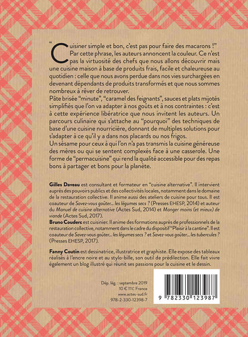 Une bonne cuisine maison à base de produits frais, facile et chaleureuse au quotidien, c'est ce dont nous rêvons tous : nous y voyons une garantie de qualité, de transparence et d'un plaisir sain accordé à nos goûts. Ce livre propose un parcours pédagogique inattendu, d'une simplicité désarmante, qui déboulonne des croyances pourtant bien établies et va nous permettre de retrouver de l'autonomie dans notre vie alimentaire. C'est à cette expérience libératrice que nous invitent les auteurs. Un parcours culinaire qui s'attache au pourquoi des techniques et aux conditions de réussite de nos plats, donnant de multiples solutions pour s'adapter à ce qu'il y a dans nos placards ou nos frigos.