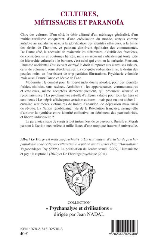 Choc des cultures ! Ronde infernale des mots armés : racisme, esclavage, colonialisme, ethnocide, eugénisme, dégénérescence, xénophobie, ségrégation, multiculturalisme, appartenance, identité nationale, discrimination, intégration, libertés individuelles... Différences culturelles à promouvoir (indianité, négritude...) ou droit à la fluidité identitaire, au métissage universel ? Psychiatrie coloniale et Frantz Fanon, la psychanalyse entre deux. Merah, Breivik se veulent les défenseurs de la pureté culturelle, paranoïa apocalyptique...