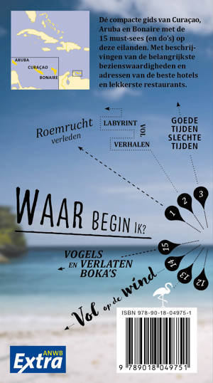 Ontdek Aruba, Bonaire en Curaçao met de compleet vernieuwde reisgids ANWB Extra Curaçao, Aruba en Bonaire! Het hele jaar zon, volop stranden, een prachtig blauwe zee en fleurige huizen. Hierdoor zijn deze eilanden de perfecte bestemmingen voor een heerlijke zonvakantie.