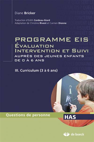 Le programme d'évaluation EIS est plus qu'un instrument d'évaluation et d'intervention destiné aux jeunes enfants présentant des incapacités ou le risque d'en développer. Il constitue un système complet permettant de receillir des renseignements pertinents sur le plan fonctionnel et éducatif.