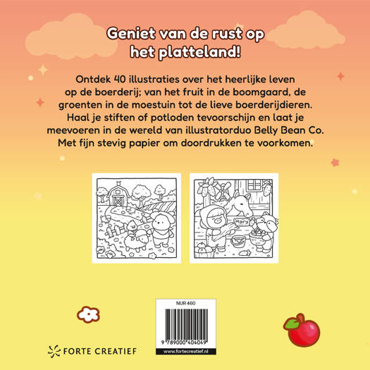 Toe aan een ontspannen moment? Even wegdromen bij maar liefst 40 lieve en knusse tekeningen; van het fruit in de boomgaard, de groenten in de moestuin tot de lieve boerderijdieren. Haal je stiften of potloden tevoorschijn en laat je meevoeren in de wereld van illustratorduo Belly Bean Co.