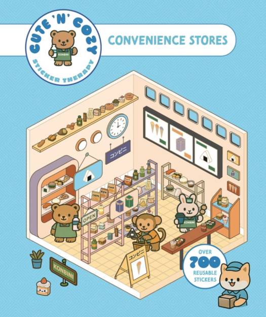 Create the coziest "konbini" convenience store imaginable, with six room sets and hundreds of stickers...
