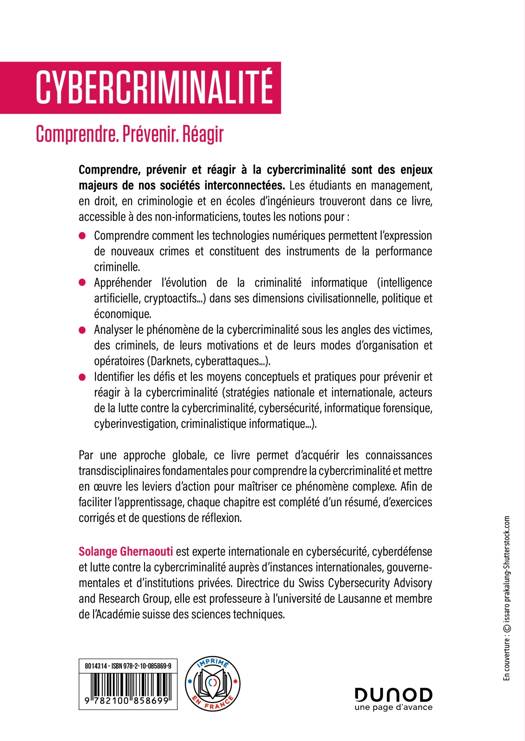Comprendre, prévenir et réagir à la cybercriminalité sont des enjeux majeurs de nos sociétés interconnectées. Les étudiants en management, en droit, en criminologie et en écoles d'inégnieurs trouveront dans ce livre, accessible à des non-informaticiens, toutes les notions pour :