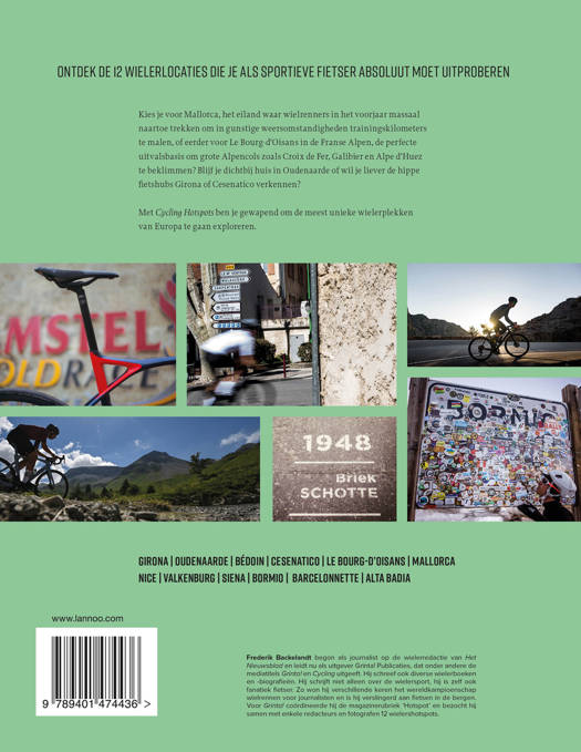 Kies je voor Mallorca, het eiland waar wielrenners in het voorjaar massaal naartoe trekken om in gunstige weersomstandigheden trainingskilometers te malen, of eerder voor Le Bourg-d'Oisans in de Franse Alpen, de perfecte uitvalsbasis om grote Alpencols zoals Croix de Fer, Galibier en Alpe d'Huez te beklimmen? Blijf je dicht bij huis in Oudenaarde of wil je liever de hippe fietshubs Girona of Cesenatico verkennen? Met Cycling Hotspots ben je gewapend om de meest unieke wielerplekken van Europa te gaan exploreren.