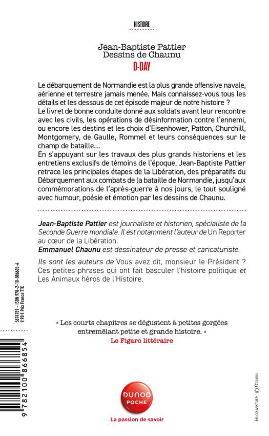Le débarquement de Normandie est la plus grande offensive navale, aérienne et terrestre jamais menée. Mais connaissez-vous tous les détails et les dessous de cet épisode majeur de notre histoire ? En s’appuyant sur les travaux des plus grands historiens, nourris d’entretiens exclusifs de témoins de l’époque, Jean-Baptiste Pattier vous fait revivre cette aventure humaine hors du commun, depuis les préparatifs du Débarquement jusqu’aux combats de la bataille de Normandie, en passant par les grandes figures de l’événement (Eisenhower, Patton, Churchill, Montgomery, de Gaulle, Rommel…). Les dessins de Chaunu soulignent le récit d’un trait tantôt humoristique, tantôt plus tragique ou poétique, invitant à la réflexion et à l’hommage aux soldats alliés et aux civils, de cette aventure humaine sans précédent.
