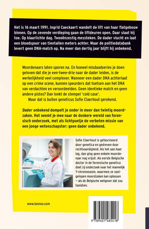 Het is 16 maart 1991. Ingrid Caeckaert wandelt de lift van haar flatgebouw binnen. Op de zevende verdieping gaan de liftdeuren open. Daar slaat hij toe. Op klaarlichte dag. Tweeënzestig messteken. De dader vlucht en laat een bloedspoor van tientallen meters achter. Maar de politiedatabank levert geen DNA-match op. Na meer dan dertig jaar blijft hij onbekend. Moordenaars laten sporen na. En hoewel misdaadseries je doen geloven dat die je een-twee-drie naar de dader leiden, is de werkelijkheid veel complexer. Wanneer een dader DNA achterlaat op een crime scene, kunnen speurders dat toetsen aan het DNA van verdachten en veroordeelden. Geen identieke match en geen andere pistes? Dan lonkt de stempel 'cold case'. Maar dat is buiten geneticus Sofie Claerhout gerekend. Dader onbekend dompelt je onder in meer dan twintig moordzaken. Het neemt je mee naar de donkere wereld van forensisch onderzoek, met als lichtpuntje de verbeten missie van een jonge wetenschapster: geen dader onbekend.
