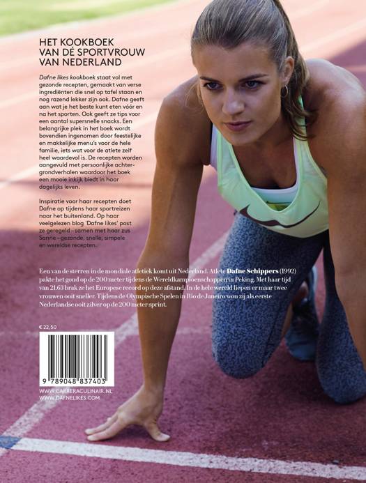 Dafne LIKES kookboek staat vol met gezonde recepten, gemaakt van verse ingrediënten die snel op tafel staan en nog razend lekker zijn ook. Dafne geeft aan wat je het beste kunt eten voor en na het sporten. Ook geeft ze tips voor een aantal supersnelle snacks. Een belangrijke plek in het boek wordt bovendien ingenomen voor feestelijke en makkelijke menu's voor het hele gezin, iets wat voor de atlete zelf van grote waarde is. De recepten worden aangevuld met persoonlijke achtergrondverhalen waardoor het boek een mooie inkijk biedt in haar dagelijks leven.