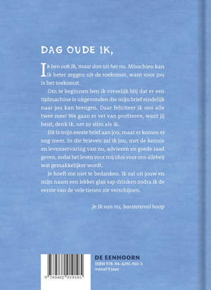 Een jongen heeft een briljant idee: hij schrijft brieven met advies naar zijn vroegere ik. Na de uitvinding van de teletijdmachine zal zijn ‘oude ik’ al die brieven krijgen en raken al zijn problemen in het ‘nu’ opgelost. Slechte cijfers? Hou je gewoon aan dit studieschema. Jezelf (weer) belachelijk gemaakt in de gymles omdat Monica naar je aan het kijken was? Vermijd de balk, hang niet de clown uit.