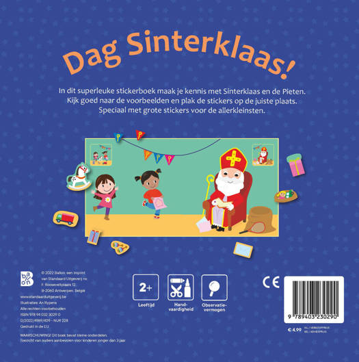 In dit superleuke stickerboek maak je kennis met Sinterklaas en de Pieten. Kijk goed naar de voorbeelden en plak de stickers op de juiste plaats. Speciaal met meer dan 80 grote stickers voor de allerkleinsten.