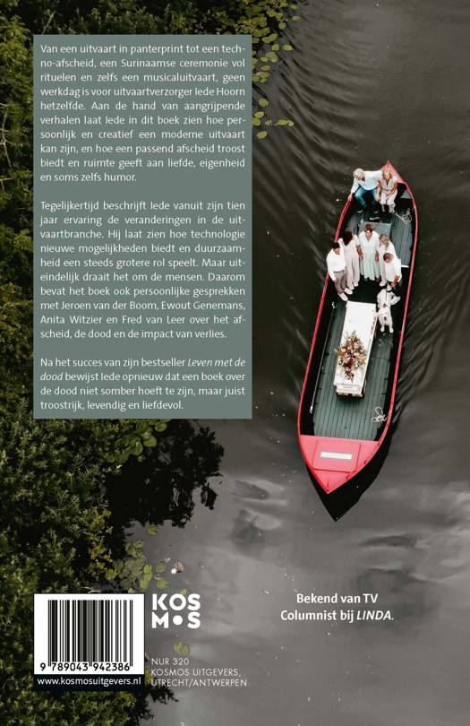 Over Iede Hoorn Iede Hoorn begon zijn loopbaan als steward, tot een billboard van een uitvaartcentrum zijn leven een andere richting gaf. Inmiddels is hij uitgegroeid tot Nederlands bekendste uitvaartverzorger. Hij is columnist bij LINDA.nl, deelt over zijn werk via social media en is regelmatig te zien in de media. Dagboek van een uitvaartverzorger is zijn tweede boek. Eerder verscheen de bestseller Leven met de dood, waarmee hij een breed publiek wist te raken. Samen met zijn man Chris en zoontje Elia woont hij in Amsterdam.