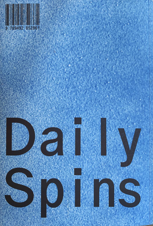 'Daily Spins' is designed by Team Thursday (Loes van Esch & Simone Trum). Every cover of the 1,500 books is sprayed by team Thomas Trum. This makes the books itself a series of colour experiments: one colour on the front and another on the back mix into a new colour on the spine. This makes every copy of the book unique.
