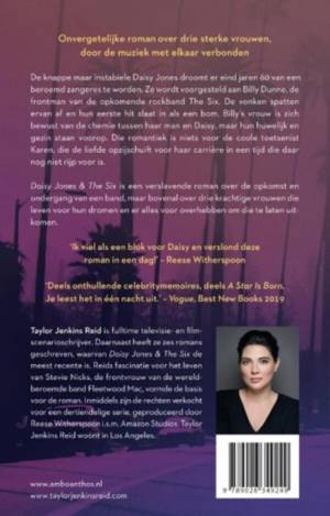 De knappe maar instabiele Daisy Jones droomt er eind jaren 60 van een beroemd zangeres te worden. Ze wordt voorgesteld aan Billy Dunne, de frontman van de opkomende rockband The Six. De vonken spatten ervan af en hun eerste hit slaat in als een bom. Billy's vrouw is zich bewust van de chemie tussen haar man en Daisy, maar hun huwelijk en gezin staan voorop. Die romantiek is niets voor de coole toetsenist Karen, die de liefde opzijschuift voor haar carrière in een tijd die daar nog niet rijp voor is. 'Ik viel als een blok voor Daisy en verslond deze roman in een dag!' – Reese Witherspoon 'Deels onthullende celebritymemoires deels A Star Is Born. Je leest het in één nacht uit.' – Vogue Best New Books 'Volledig geloofwaardig en een feest om te lezen.' - The Times 'Reid is onovertroffen in het neerzetten van imperfecte personages, en de strakke plot doet je racen naar het einde van deze verslavende roman.' - Publishers Weekly (starred)