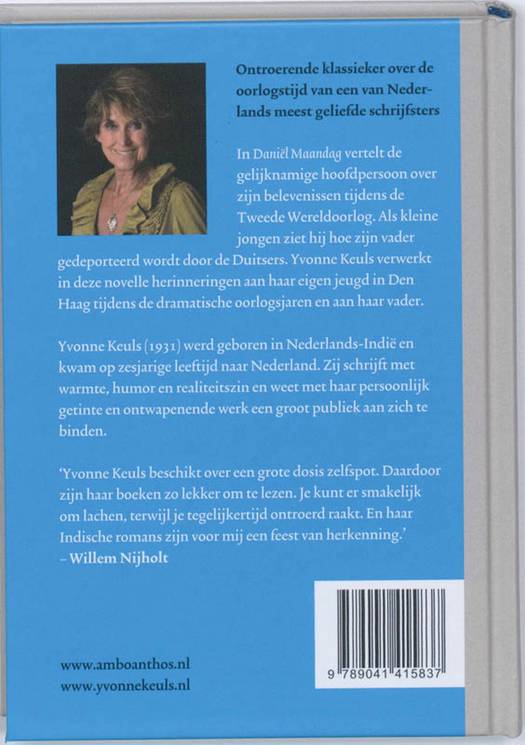 In Daniël Maandag vertelt de gelijknamige hoofdpersoon over zijn belevenissen tijdens de Tweede Wereldoorlog. Als kleine jongen ziet hij hoe zijn vader wordt gedeporteerd door de Duitsers. Vanuit de optiek van Daniël verwerkt Yvonne Keuls in deze novelle haar herinneringen aan haar eigen jeugd in Den Haag tijdens de dramatische oorlogsjaren en aan haar vader.