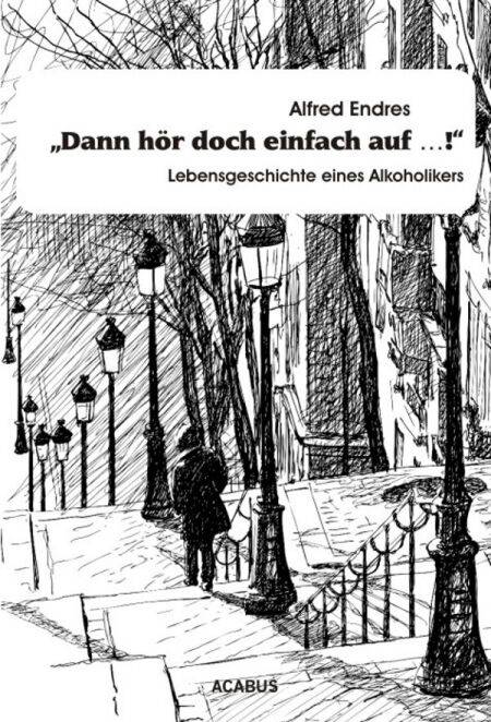 "Dann hör doch einfach auf …!" Es klingt so leicht, doch spätestens als sein Alkoholkonsum Alfred Endres auf die Intensivstation bringt, ist klar, dass er die Kontrolle über die Sucht komplett verloren hat. Was lief schief im Leben des jungen Mannes, dass ihn der Alkohol beinahe tötete? Vom melancholischen Jugendlichen zum depressiven Erwachsenen bis hin zum Schwerstabhängigen mit Suizidwünschen erlebt er die Fesseln der Sucht, ohne sich diesen erwehren zu können. Seit frühester Jugend von niemandem verboten oder eingeschränkt, wird die beruhigende und stimulierende Wirkung des Alkohols in allen Lebenslagen von ihm benutzt. Lange Zeit fällt er damit kaum auf und kann seine bürgerliche Existenz aufrechterhalten. Die Katastrophe scheint vorprogrammiert, doch bevor Alfred alles verliert, schenkt ihm das Schicksal eine zweite Chance, die er mit aller Macht ergreift… Mit authentischen Worten lässt Alfred Endres sein Leben Revue passieren und reflektiert, wie seine Suchterkrankung entstanden ist und wie er, als sein Leben auf Messers Schneide stand, schließlich begann, zusammen mit Familie, Therapeuten, Ärzten und Freunden um seine Genesung zu kämpfen. Als Teil seines Heilungsprozesses schreibt er seine Erfahrungen nieder und möchte damit auch anderen Betroffenen und Angehörigen Mut und Hoffnung machen.