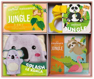 Ce formidable coffret regroupe 1 gant de toilette, lavable en machine, 1 livre poussette et 1 livre de bain pour que bébé découvre les joies de la lecture. Le cadeau de naissance parfait !