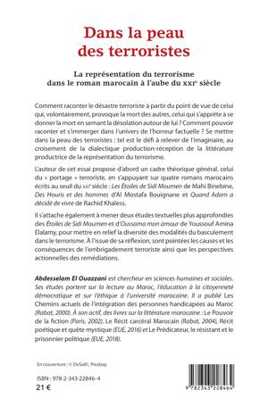 Comment raconter le désastre terroriste à partir du point de vue de celui qui, volontairement, provoque la mort des autres, celui qui s'apprête à se donner la mort en semant la désolation autour de lui ? Cet ouvrage propose d'abord un cadre théorique général, celui du portage terroriste, en s'appuyant sur trois romanciers marocains du XXIe siècle: Mahi Binebine, Al Mostafa Bouignane et Rachid Khaless. Il s'attache également à mener des études textuelles plus approfondies des oeuvres de Youssouf Amina Elalamy, pour mettre en relief la diversité des modalités du basculement dans le terrorisme. À l'issue de cette réflexion, sont pointées les causes et les conséquences de l'embrigadement terroriste ainsi que les perspectives actionnelles des remédiations.