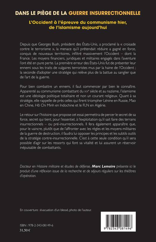 Depuis que Georges Bush a proclamé la "croisade contre le terrorisme", la menace qu'il prétendait réduire a gagné en force et infiltré massivement l'Occident. Apparenté au communisme combattant du XXe siècle et au nazisme, l'islamisme est une idéologie politique totalitaire et non un courant religieux. Le retour sur l'histoire que propose cet essai permettra de percer le secret de sa force, secret qui tient à l'exploitation qu'il sait faire des terrains insurrectionnels. Pour le vaincre, il faudra lui opposer les principes et les outils de la stratégie contre-insurrectionnelle et non les moyens de la guerre de destruction.