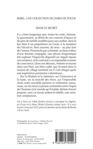Deux frères font en Corse, chacun à sa façon, l'expérience que les rêves ou la mémoire peuvent enfermer entre leurs murs ceux qui succombent à leurs toxiques sortilèges. Sur la filiation et le secret, le Mal et la mort, la rémanence du sacré et du profane, l'innocence et la faute, un roman baroque et philosophique, rebelle et douloureux.