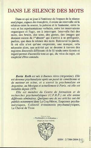 Dans ce qui se joue à l'intérieur de l'espace de la séance analytique, espace des transferts, il existe un intervalle où la relation entre la source, la pulsion et le fantasme, entre la voix et les représentations verbales, entre les innervations organiques et l'agir, est à interroger. Intervalle fait des mots, des bruits, des sons, des gestes, des images qui donnent raison de l' « absent » qui n'arrive à se préfigurer, parfois, que dans le silence des mots. Retrouver la parole, là où elle n'est qu'une empreinte, une marque, cela nécessite alors, une activité qui se dessine à travers des registres discursifs différents où le fil tendu entre écoute et regard permet d'accueillir tout ce qui, du vécu du sujet, est empêché d'être entendu.