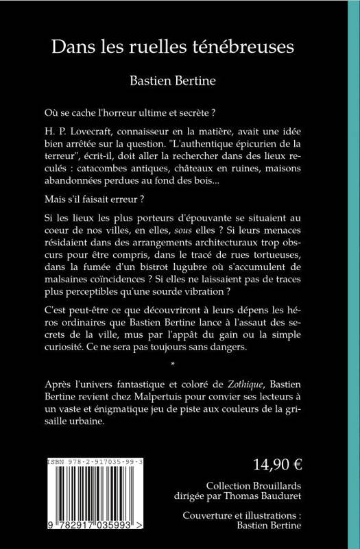 Si les lieux les plus porteurs d’épouvante se situaient au coeur de nos villes, en elles, sous elles ? Si leurs menaces résidaient dans des arrangements architecturaux trop obscurs pour être compris, dans le tracé de rues tortueuses, dans la fumée d’un bistrot lugubre où s’accumulent de malsaines coïncidences ? Si elles ne laissaient pas de traces plus perceptibles qu’une sourde vibration ?