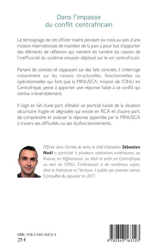 Le témoignage de cet officier inséré pendant six mois au sein d'une mission internationale de maintien de la paix a pour but d'apporter des éléments de réflexion qui mettent en lumière les raisons de l'inefficacité du système onusien déployé sur le sol centrafricain. Partant de constats et s'appuyant sur des faits concrets, il s'interroge notamment sur les raisons structurelles, fonctionnelles ou opérationnelles qui font que la MINUSCA, mission de l'ONU en Centrafrique, peine à apporter une réponse fi able à ce conflit qui s'enlise irréversiblement.