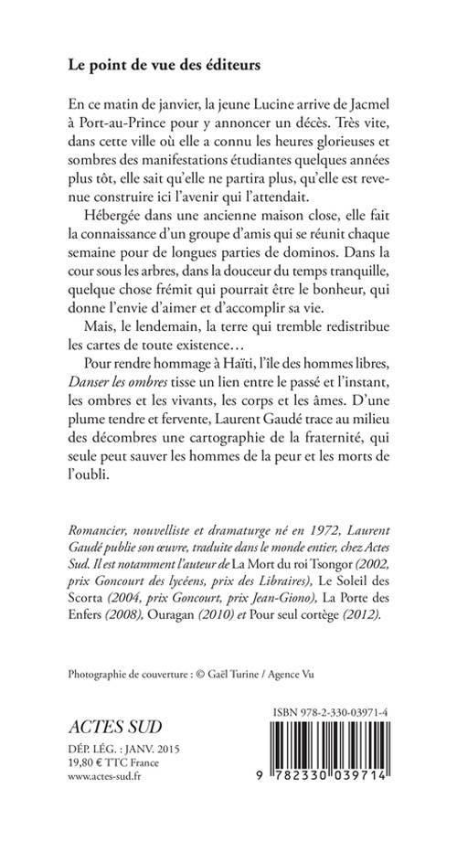 Pour rendre hommage à Haïti, l'île des hommes libres, «Danser les ombres» tisse un lien entre le passé et l'instant, les ombres et les vivants, les corps et les âmes. D'une plume tendre et fervente, Laurent Gaudé trace au milieu des décombres une cartographie de la fraternité, qui seule peut sauver les hommes de la peur et les morts de l'oubli.